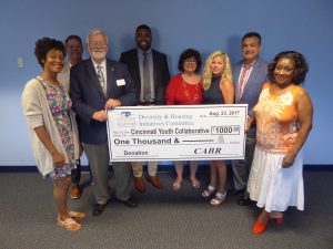 CYC is so grateful for the generosity of the Diversity & Housing Initiative Committee of the Cincinnati Area Board of Realtors for the $1,000 check that was presented today. We are touched by their heart and compassion for our youth!